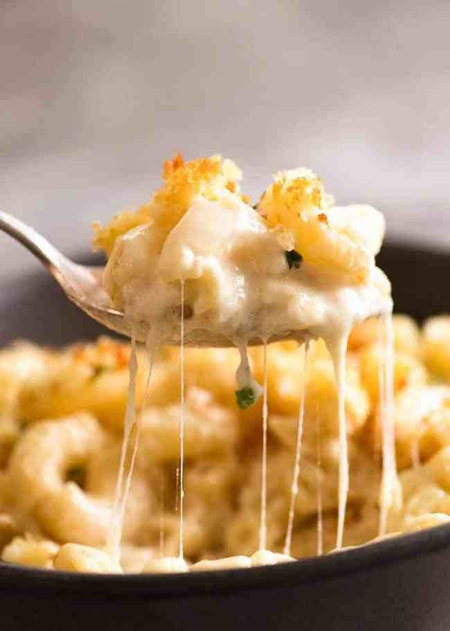This is a Mac and Cheese recipe that is everything you want in a knock-your-socks-off Macaroni Cheese – cheesy and creamy, with perfectly cooked macaroni (no bloated pasta!), plenty of sauce and a crunchy buttery top (essential in my world!)