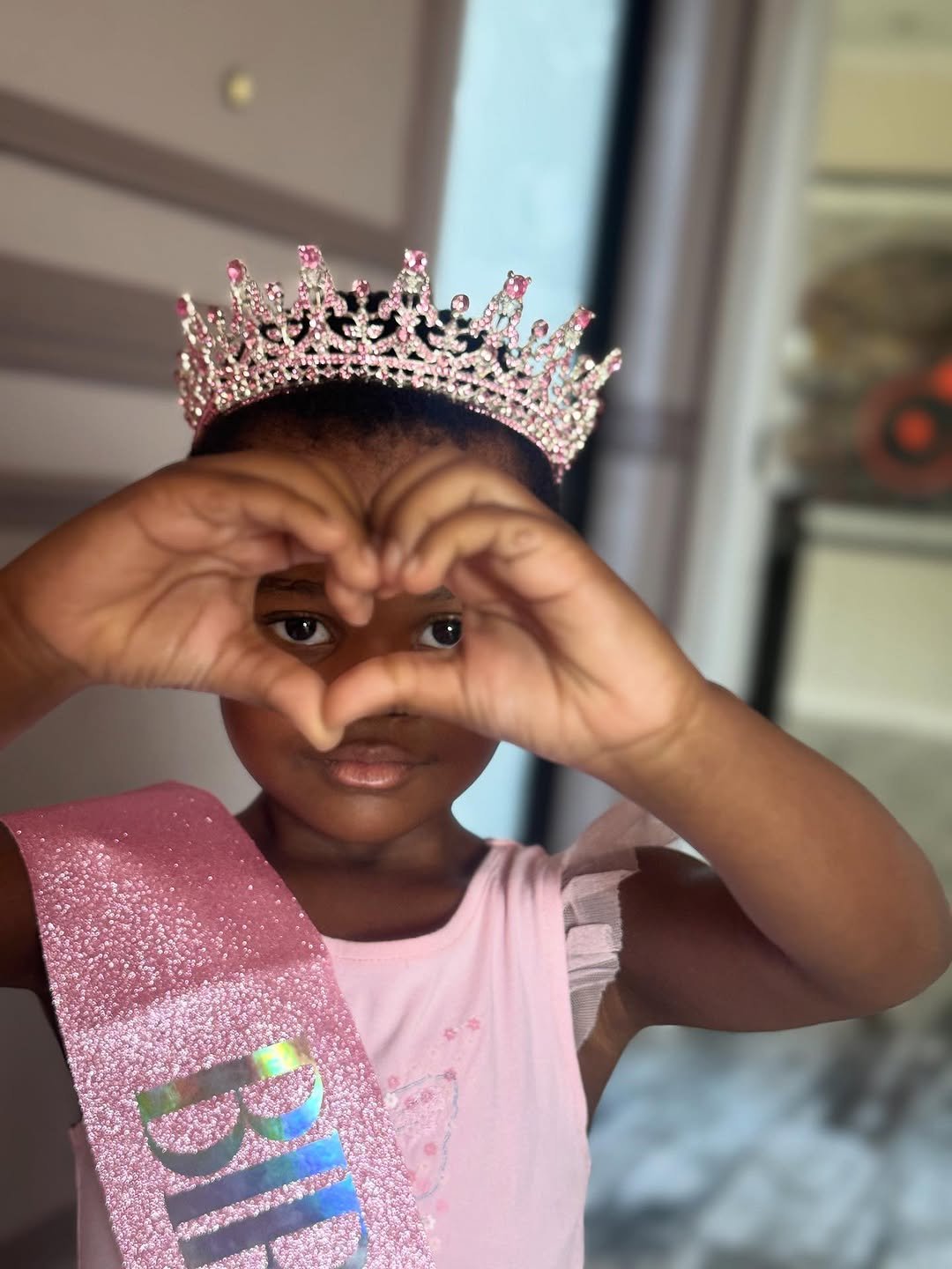 The little girl was the star of the house on Monday as her parents had her dressed in a pink gown, with a pink sash and pink balloons.